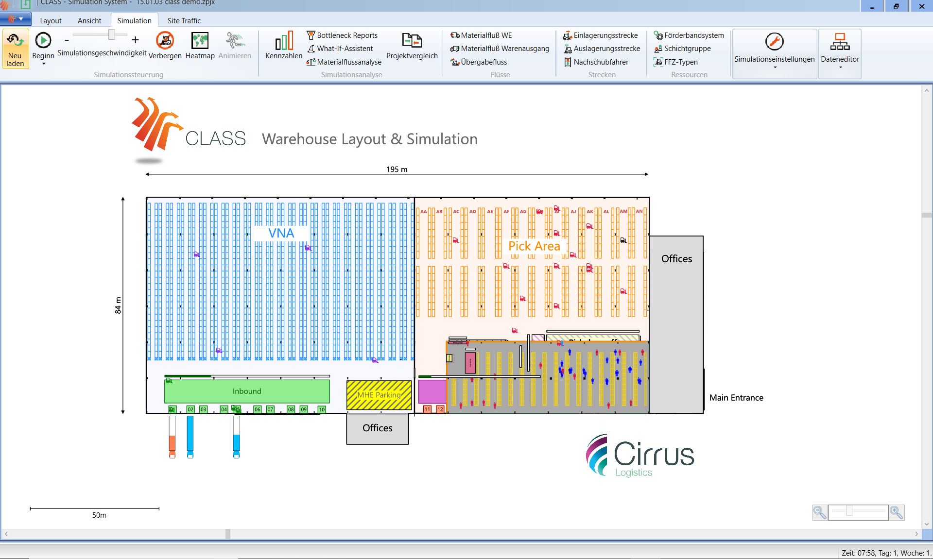 CLASS ist damit ein computerbasiertes Planungs- und Simulationswerkzeug für Logistiksysteme.